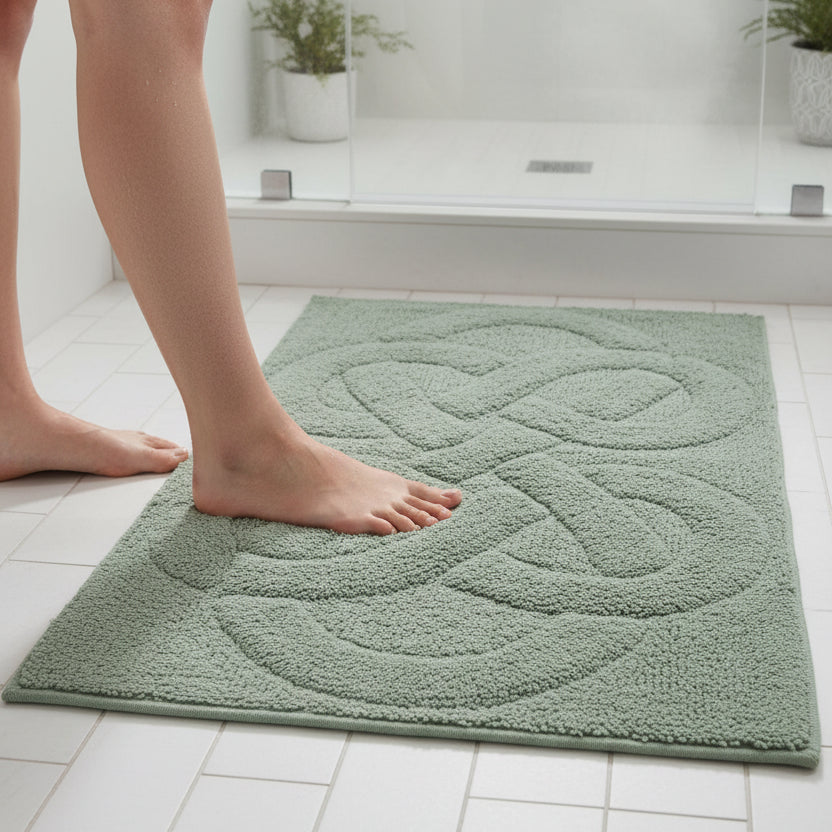 Say hello to the Tuft Twisted Bath Rug—where plush meets playful. Its geometric infinity pattern brings endless style, while the 100% cotton, super‑plush 2500 GSM build delivers cloud‑level comfort. Finished with a spray‑latex anti‑skid back, this rug stays put while your bathroom levels up.