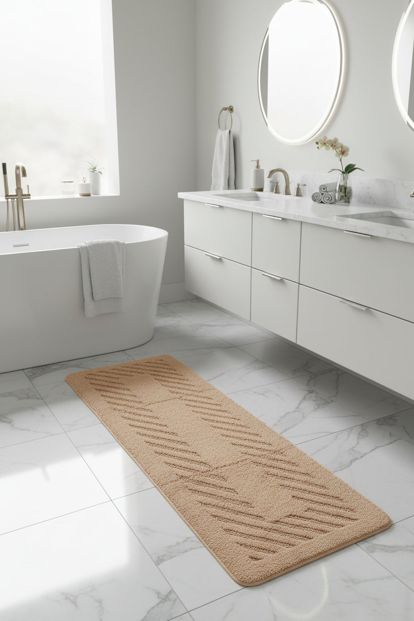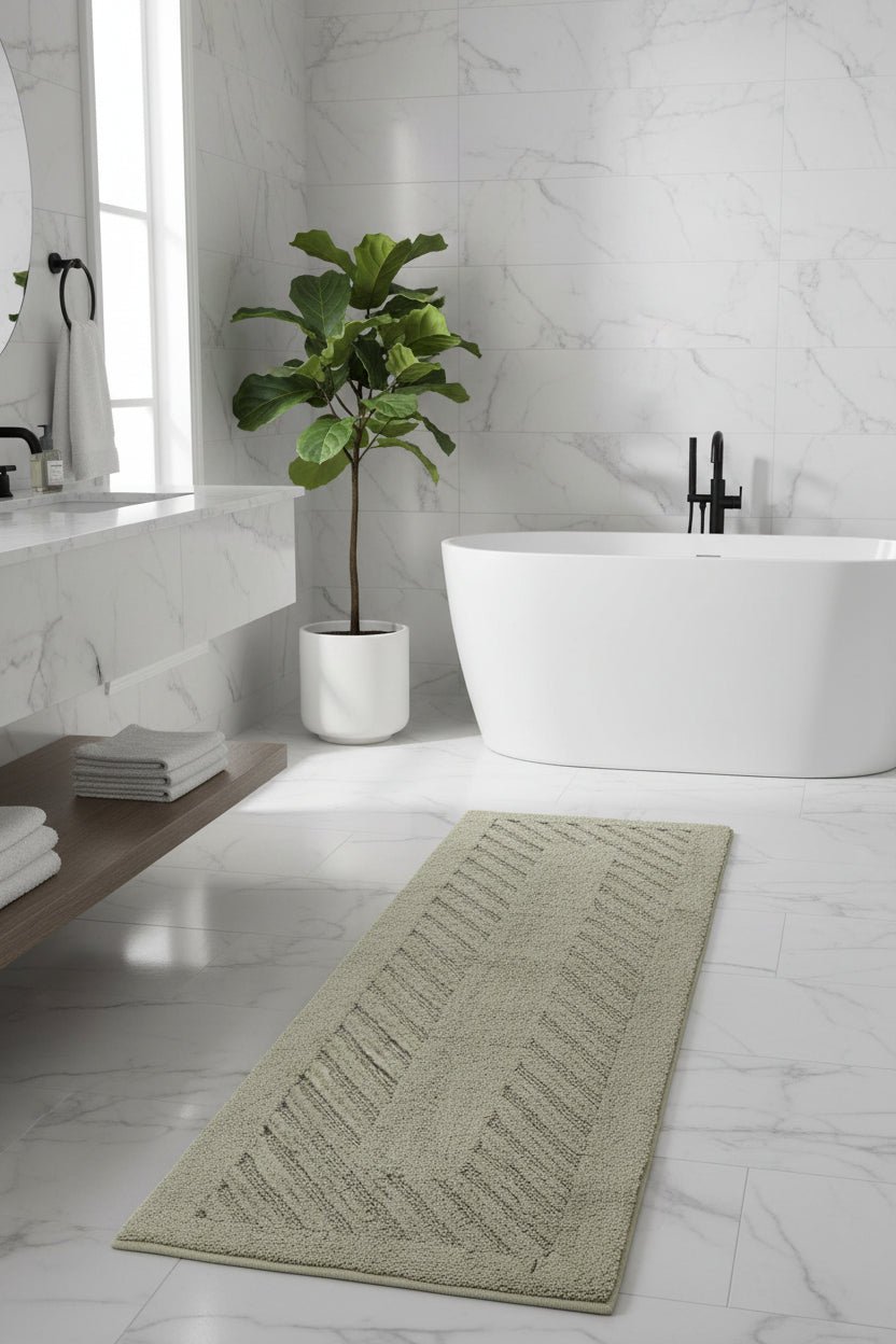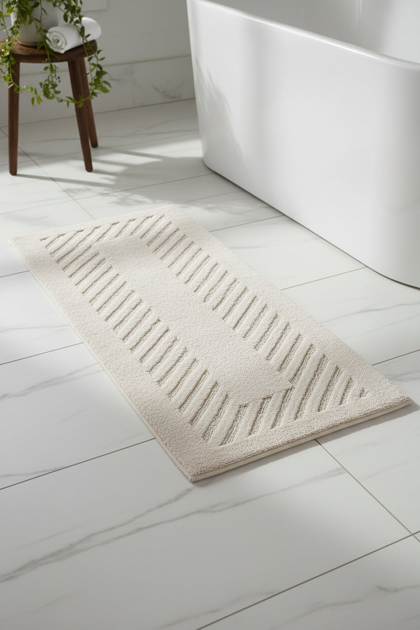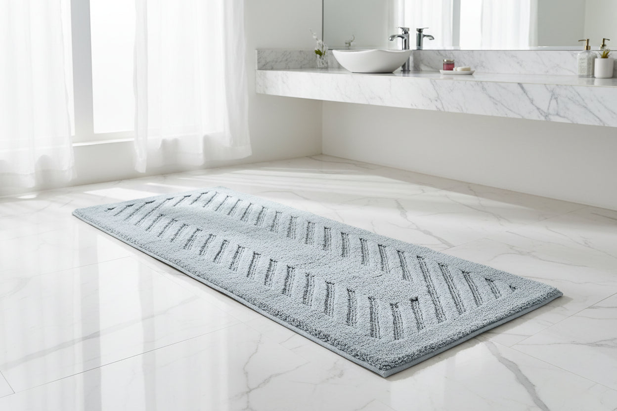 Turn your bathroom into a vibe with our Diagonal Racetrack Reversible 22"x 60" Cotton Runner Bath Rug. Bold pattern, chill azure tones, and ridiculously soft 100% super soft plush cotton with high absorbency. Super absorbent, crazy comfy, and totally reversible—because why not have two looks in one? Luxurious 3000 GSM Quality